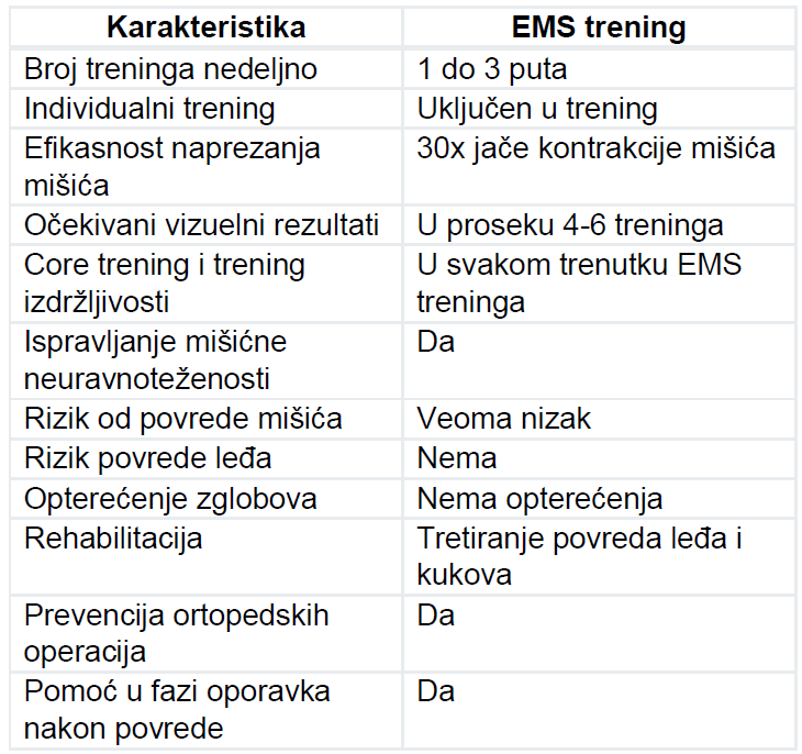 EMS TRENING U SVRHU ZDRAVLJA I REHABILITACIJE OMOGUĆAVA: